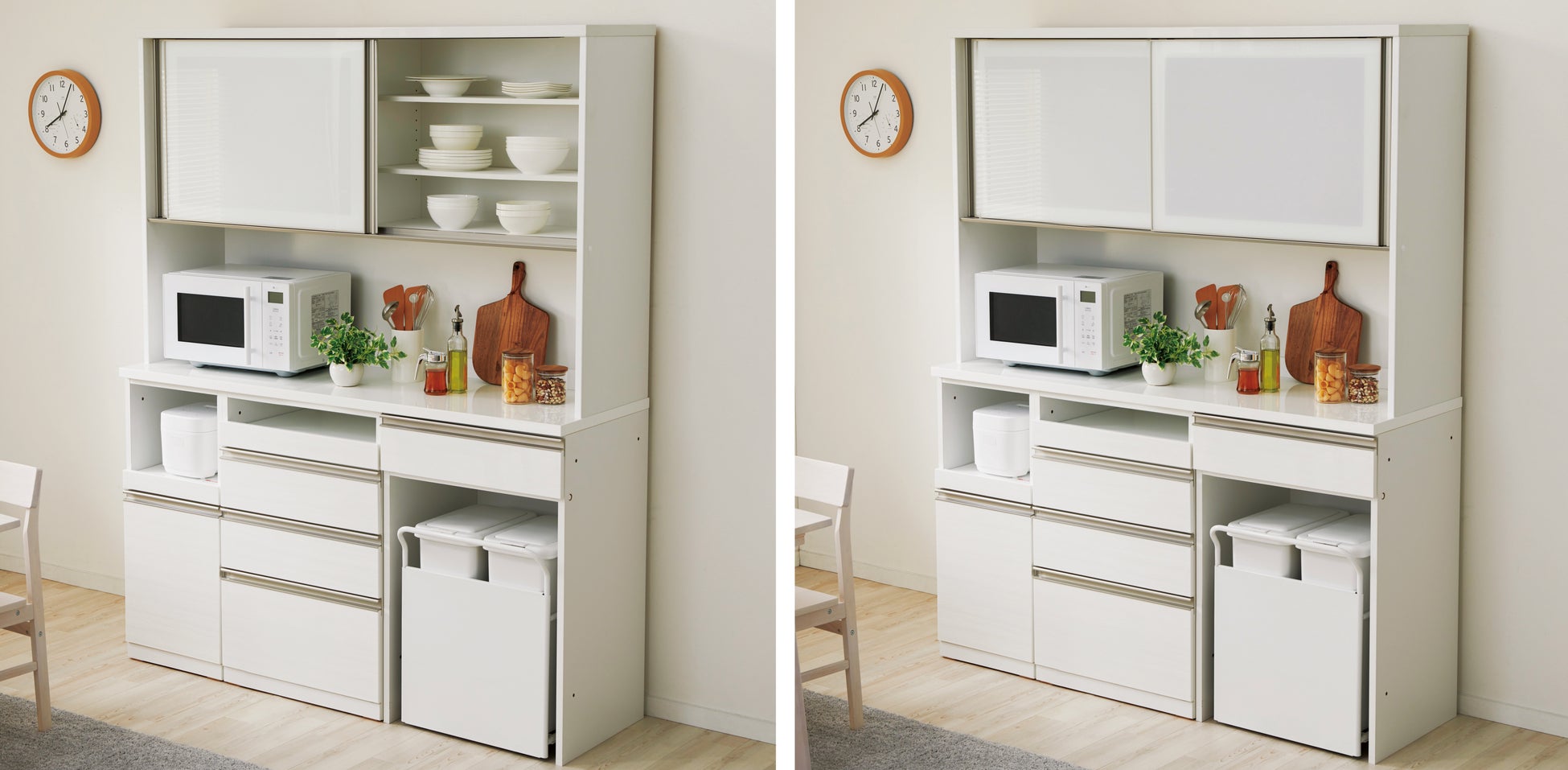 【ニトリ】人気組み合わせキッチンボード「リガーレ」がシルクホワイト色のガラス扉にリニューアル!180cm幅&高さオーダー可能な上置きも新登場