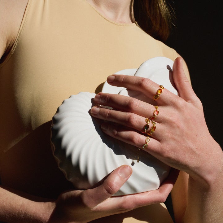 果実のように豊潤なカラーストーンを集めたチェーンリング。