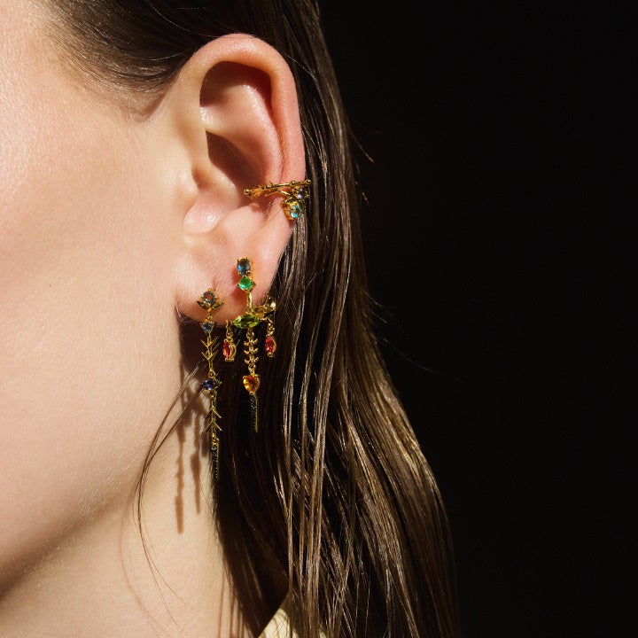 クレタ島に伝わる、ギリシャ神話を象徴するような、イルカや魚、太陽や花などのモチーフをあしらい、ミノア文明の平和で豊かな世界を映し出すような艶やかなジュエリーコレクション。こちらはシャンデリアピアス、イヤリング、イヤーカフのラインナップ。