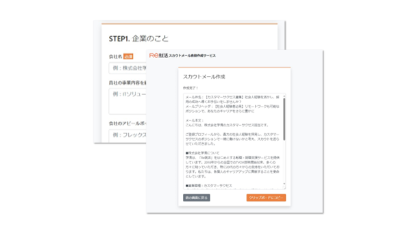 ChatGPTがスカウト作成をアシスト。最短30秒で、スカウトメール案を作成するサービスを「Re就活」「あさがくナビ」にて提供開始