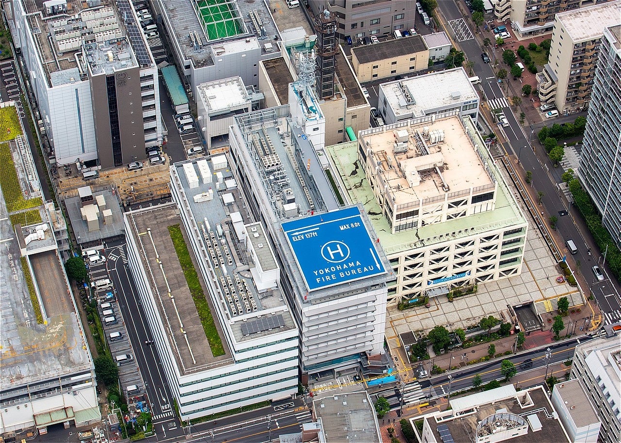 新たな消防本部庁舎では、大規模災害発生時であっても消防機能の継続性を確保するため、免震構造を採用し、消防司令センターを一体的に整備したほか、緊急消防援助隊等と連携強化するため、屋上にヘリコプターの飛行場外離着陸場(ヘリパッド)を整備しました。