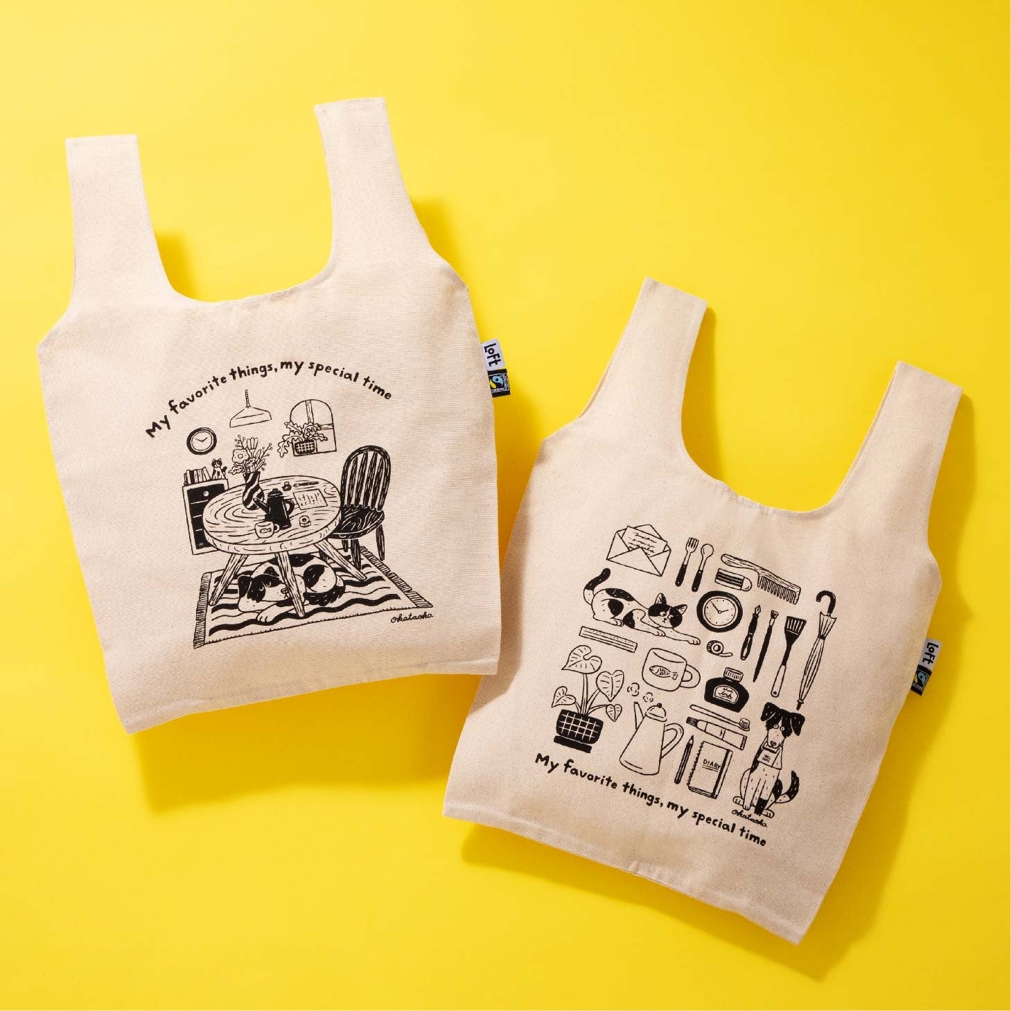 4月21日(金)より、草津ロフトで税込合計2,000円以上お買い上げのお客さま先着2,000名さまに、「ロフトオリジナル おかいものバッグ」をプレゼントします。フェアトレード&オーガニックコットンを使用し、イラストレーター・オカタオカさんによる描き下ろしイラストをプリントした、人と環境にやさしいバッグです。
