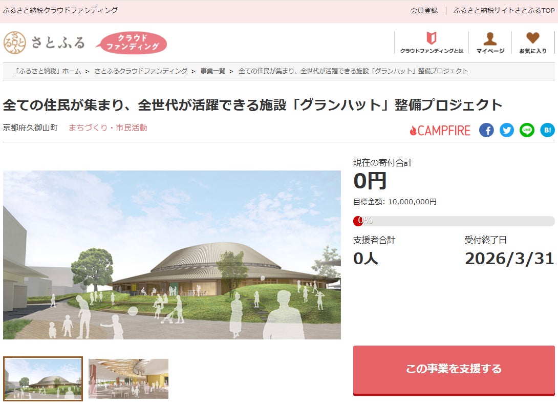 京都府久御山町とさとふる、子育て環境の向上や、全世代が活躍できる新たな施設の整備のため、寄付受け付けを開始