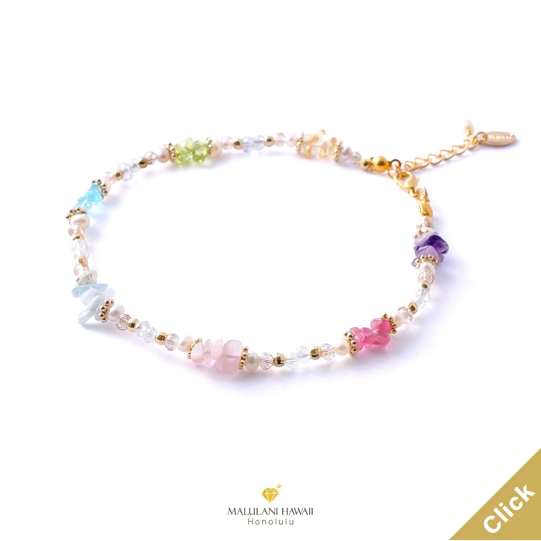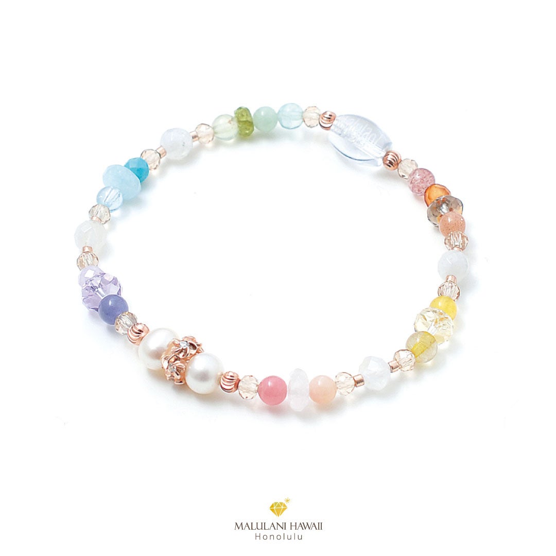 幸運を招くハワイアンレインボーを、大人可愛く仕立てたブレスレット。