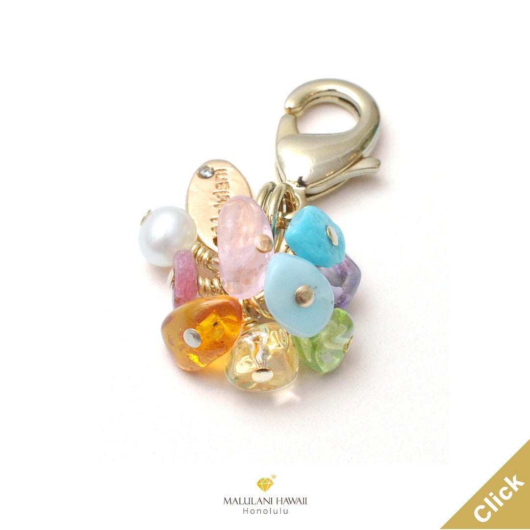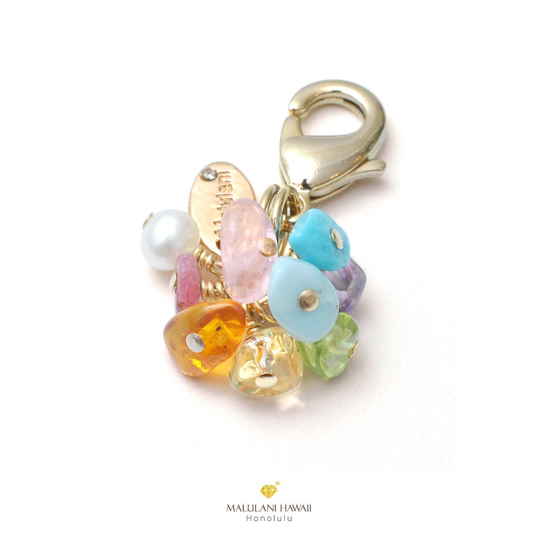 幸運を招くハワイアンレインボーを、美しいストーンで仕立てたチャーム。