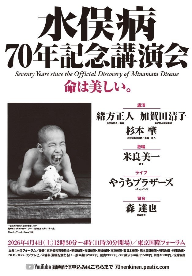 4月4日(土)に東京国際フォーラム(東京・有楽町)で「水俣病70年記念講演会」が開催、11月には渋谷ヒカリエで「水俣病70年展」が開催予定。
