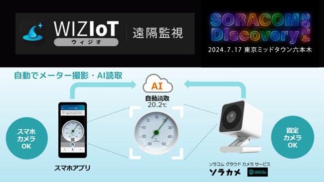 シャープの子会社である株式会社AIoTクラウド(本社:東京都江東区、代表取締役社長:松本 融)は、本年7月17日(水)に東京ミッドタウン六本木(東京都港区)で開催される株式会社ソラコム(本社:東京都港区、代表取締役社長:玉川 憲、以下、ソラコム)主催のIoTカンファレンス「SORACOM Discovery 2024」に出展します。本年2月より提供を開始した『WIZIoT(ウィジオ)遠隔監視』サービスを展示し、ソラコム製のクラウドカメラ「ソラカメ」を使用した遠隔点検の実演や、工場設備の巡回・点検業務への活用事例を紹介します。