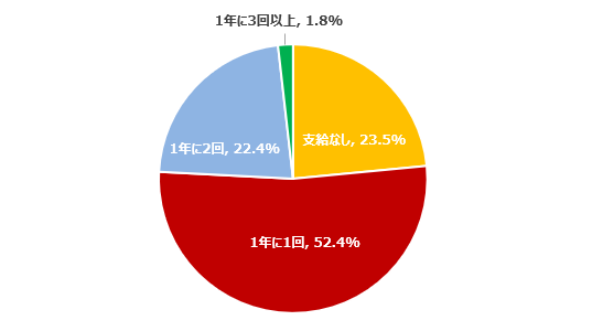 - 1 年間のボーナス支給回数は 52.4%が 1 回、次いで 22.4%が 2 回と回答。
