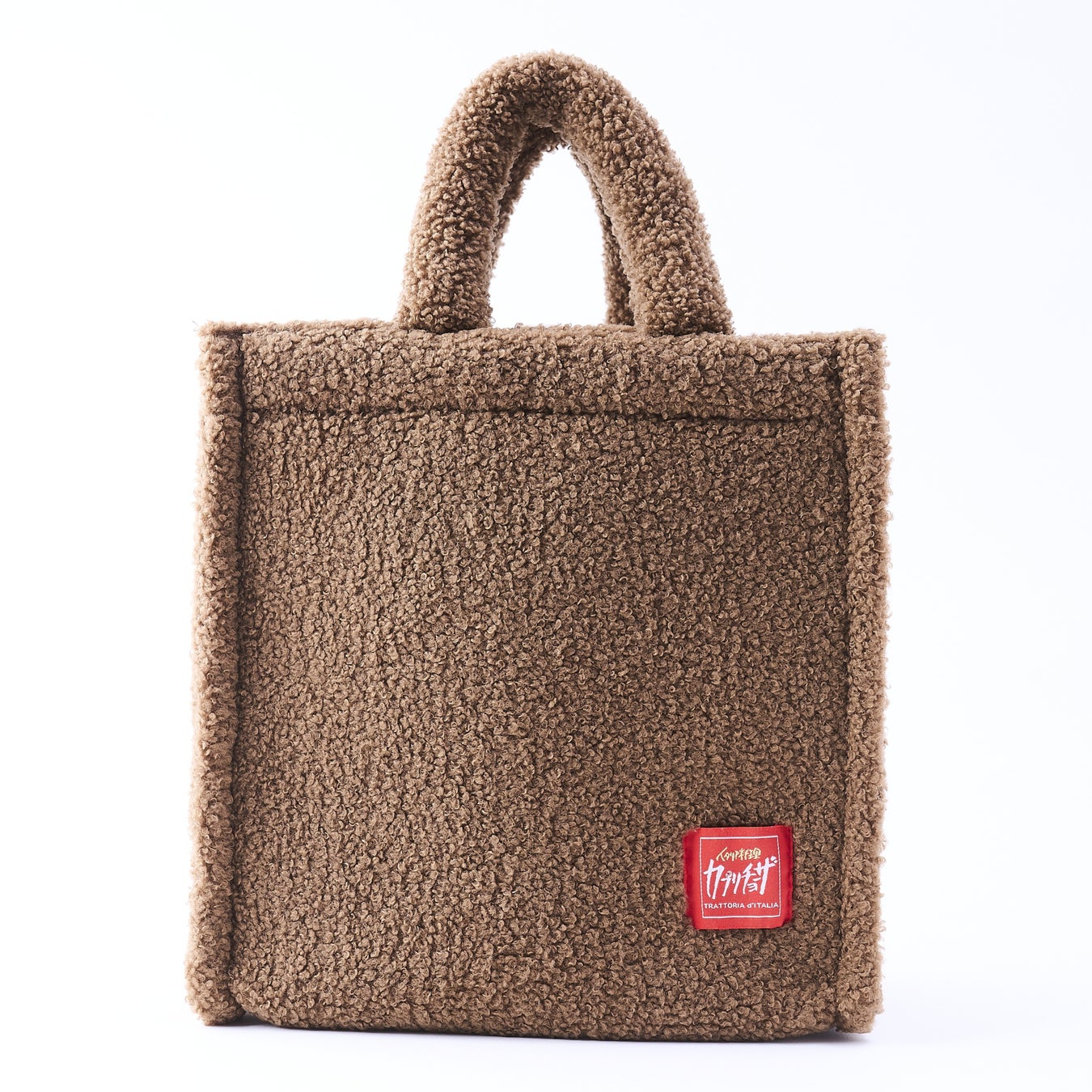 オリジナルのボアバッグは、ブラウンを基調にカプリチョーザのロゴのレッドカラーがアクセントになった、ふんわり柔らか素材のマチ付きスクエア型バッグ。サブバッグとしても使いやすいサイズ感で、ちょっとしたお出かけに便利なアイテムに仕上げました。