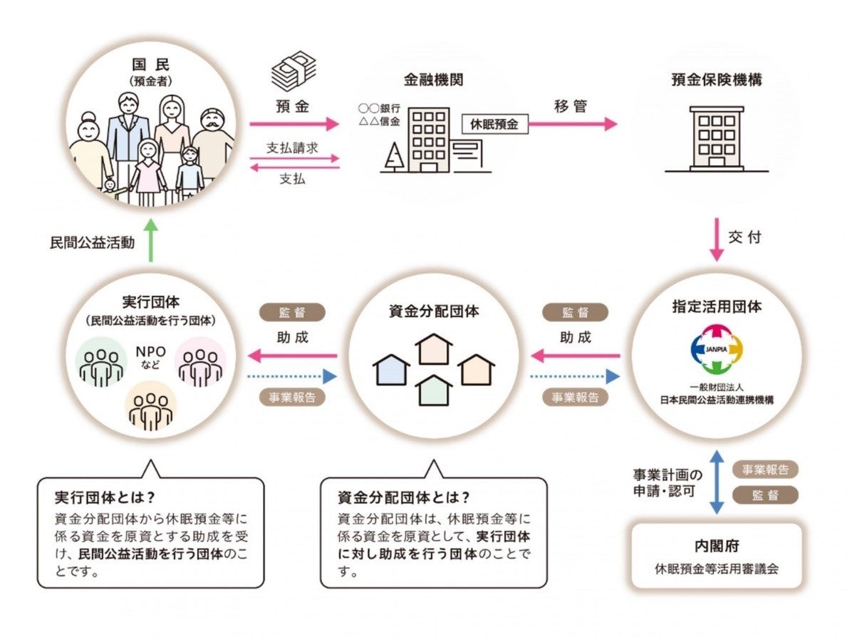 [休眠預金の流れ(JANPIA ウェブサイトより)]