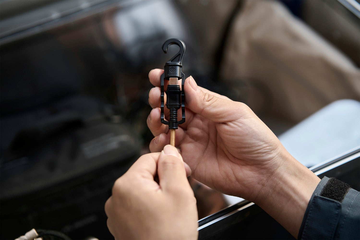 アウトドアシーンでの充電・給電時に活躍する、高い防水・防塵性能を備えた高耐久のUSBケーブルです。ケーブル外皮・内部配線に耐久力を高める構造を採用。JIS保護等級IP54で水や土汚れ、砂ぼこりからコネクターを守り、キャンプやハイキングでも安心して使える頼もしい存在で、ポータブル電源やモバイルバッテリーとの相性も抜群です。