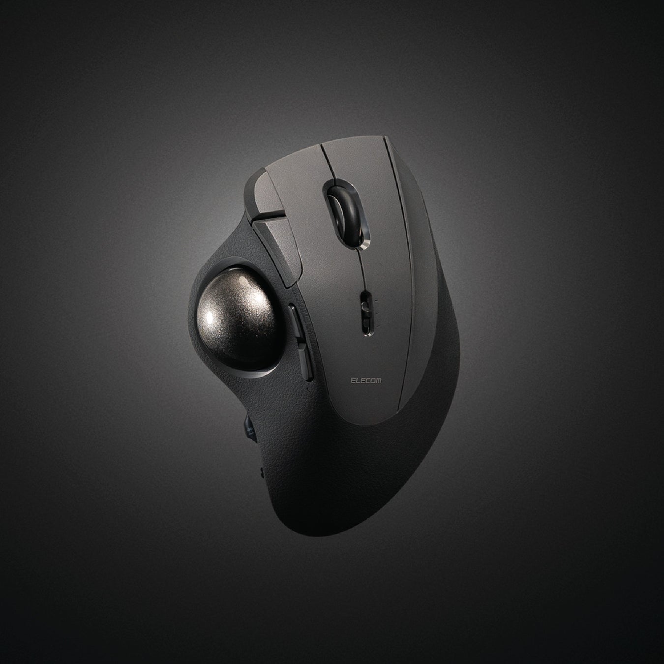 最大のパフォーマンスを、最小の動きで実現できる、10ボタンのハイグレードモデルのトラックボールマウスです。握らず自然な手の形で使えるエルゴノミクスデザインと、なめらかな操球感を実現する高性能ベアリング支持ユニットを採用。長時間の使用でも負担がかかりにくい設計です。