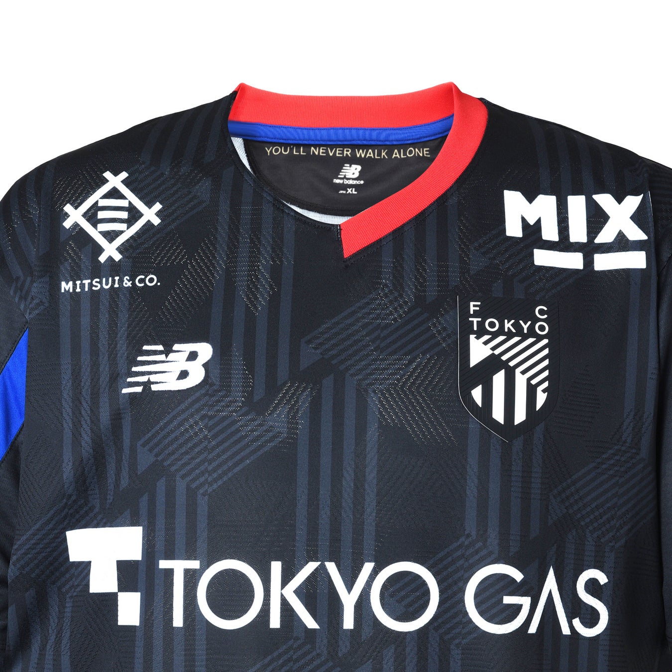 ニューバランス フットボールの代名詞であるBlack Out Apparel Collectionと連動したデザイン。シリアルナンバー入り。Black Out Apparel Collectionのコンセプトである“誰色にも染まりたくない自分の思う理想の自分”を表現するカラー、ブラックをベースに衿や袖、裾脇に青赤を差し色として採用し、FC東京カラーを際立たせます。2024年のグローバルコンセプト“Life at the intersection1”をテーマにスポーツとファッションの融合を掲げ、2024年は「アシンメトリー」をベースパターンとして採用。ジャガード柄のグラフィックにはSophisticated precision , Re-imagined tradition(洗練された正確さ、伝統の再構築)をキーワードとして最先端な都市と建物が融合した建築デザイン、ゲームデザインやミュージックビデオなどのデジタルデザイン、唐草模様、江戸切子に代表される伝統工芸の要素を取り入れ、最先端を感じるデザインをユニフォームに落とし込んでいます。ブラックのユニフォームにトーナルでFC東京のパターンを総柄で表現する事で、FC東京の強さや権威がより引き出されます。