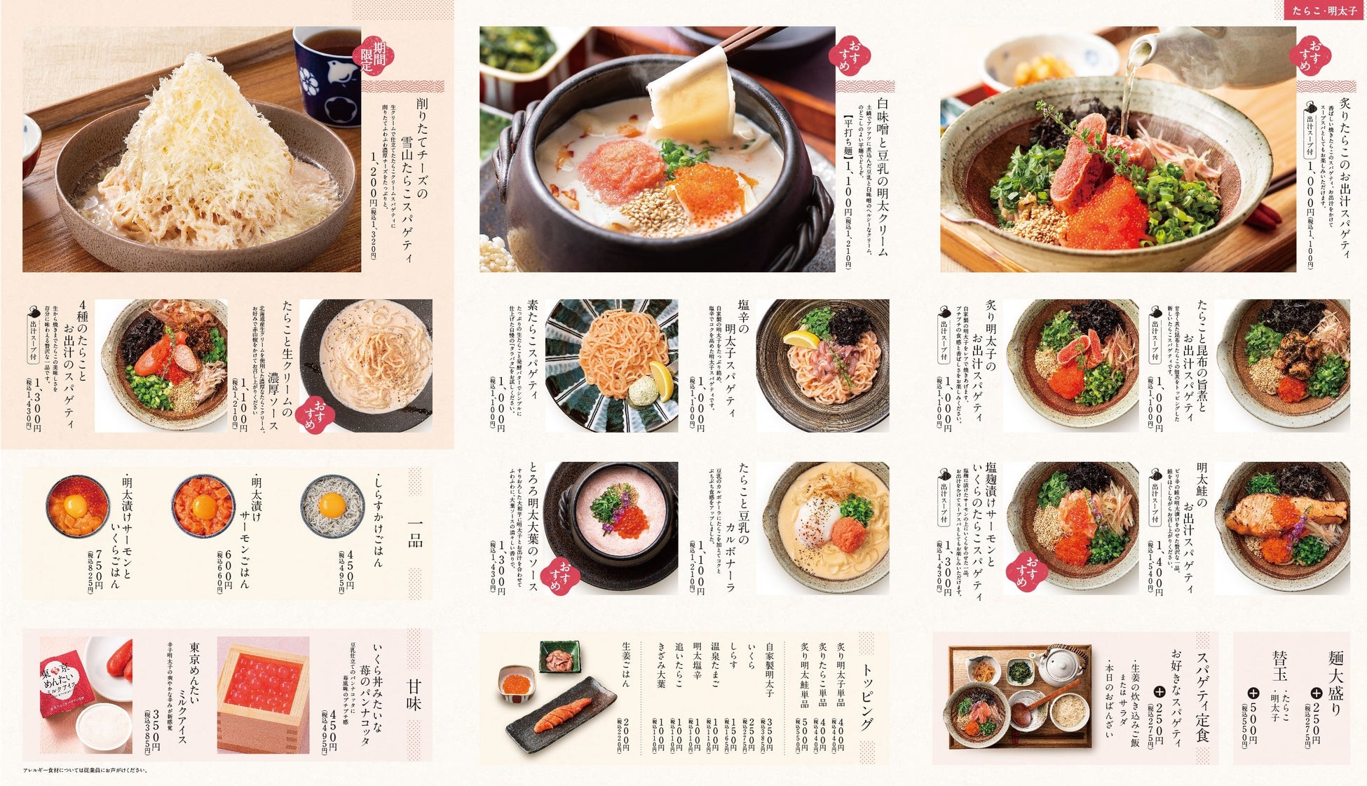 東京たらこスパゲティでは2026年2月18日(水)より、春のおとずれを感じる期間限定メニューを販売いたします。今回登場するのは「いくらとサーモンの海鮮ちらしたらこスパゲティ」と「桜のパンナコッタ」、「苺のもちもちわらび餅」の3商品です。