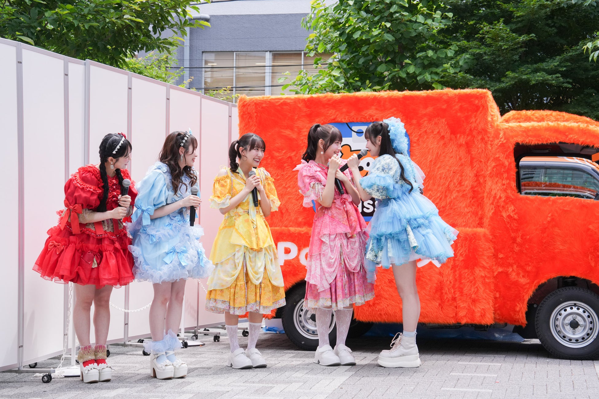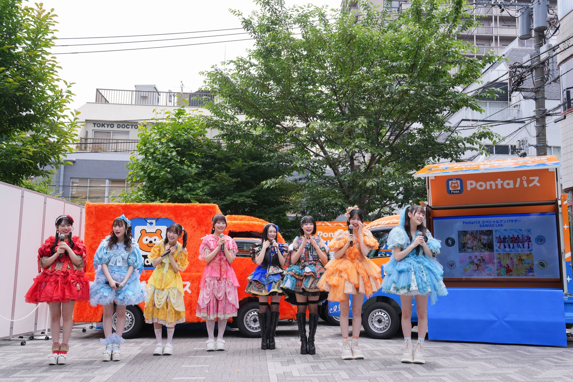 白石さんのPontaパス公式コンシェルジュ就任と、「ポンポンあげすぎトラックキャラバン」のスタートを祝して、KAWAII LAB.メンバーも応援に駆けつけました。FRUITS ZIPPERの楽曲『超めでたいソング ~こんなに幸せでいいのかな?~』をBGMに登場し、「まゆみん、Pontaパス公式コンシェルジュ就任おめでとう~!」と笑顔で祝福のメッセージを送りました。