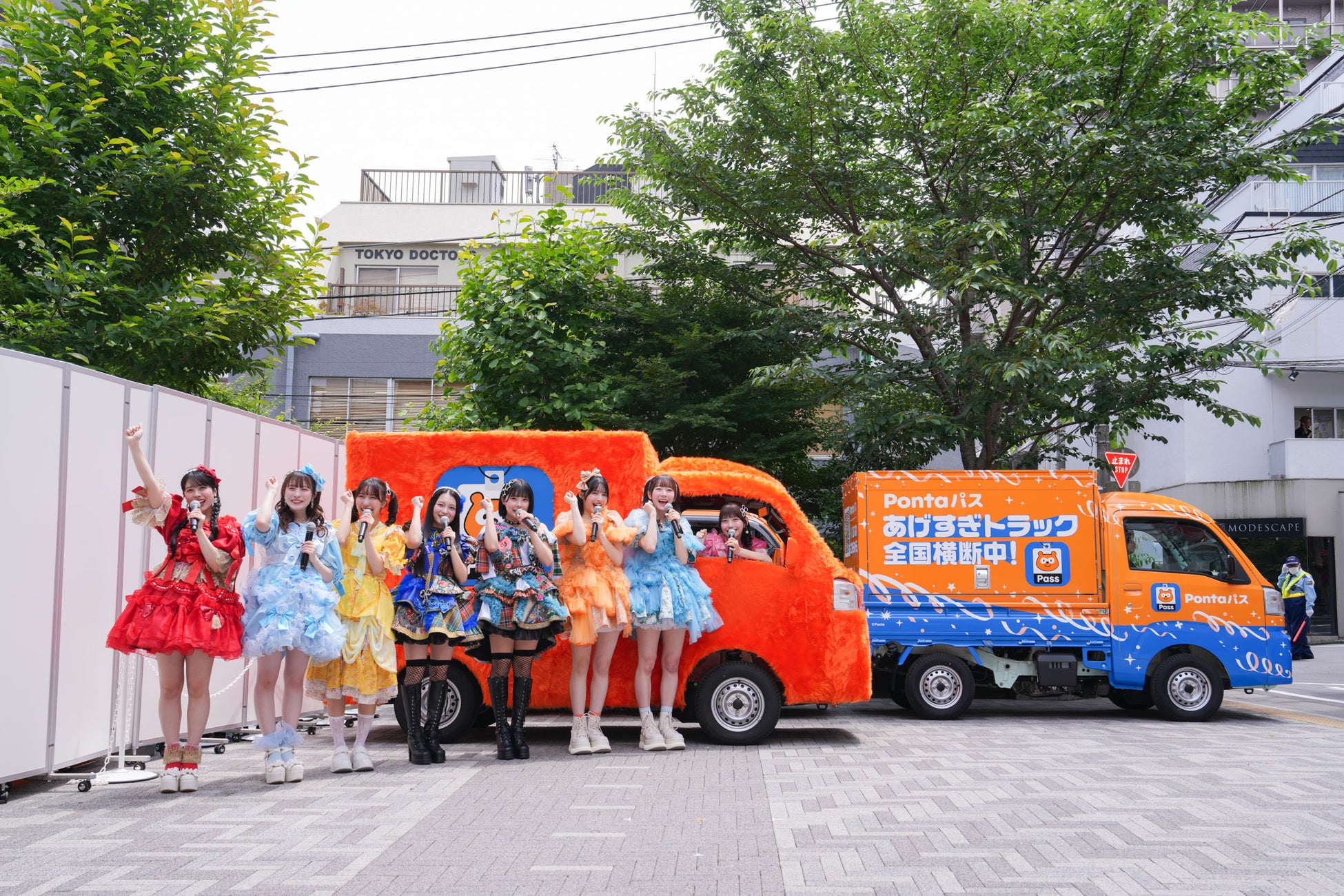 最後に、KAWAII LAB.メンバーに見守られながら、「ポンポンあげすぎトラック」がいよいよ出発。もふもふトラックに乗り込んだPontaパス公式コンシェルジュ・白石さんの掛け声を合図に、KAWAII LAB.メンバーが元気よく「しゅっぱーつ!!」と声をそろえると、「ポンポンあげすぎトラック」は日本全国へ走り出しました。