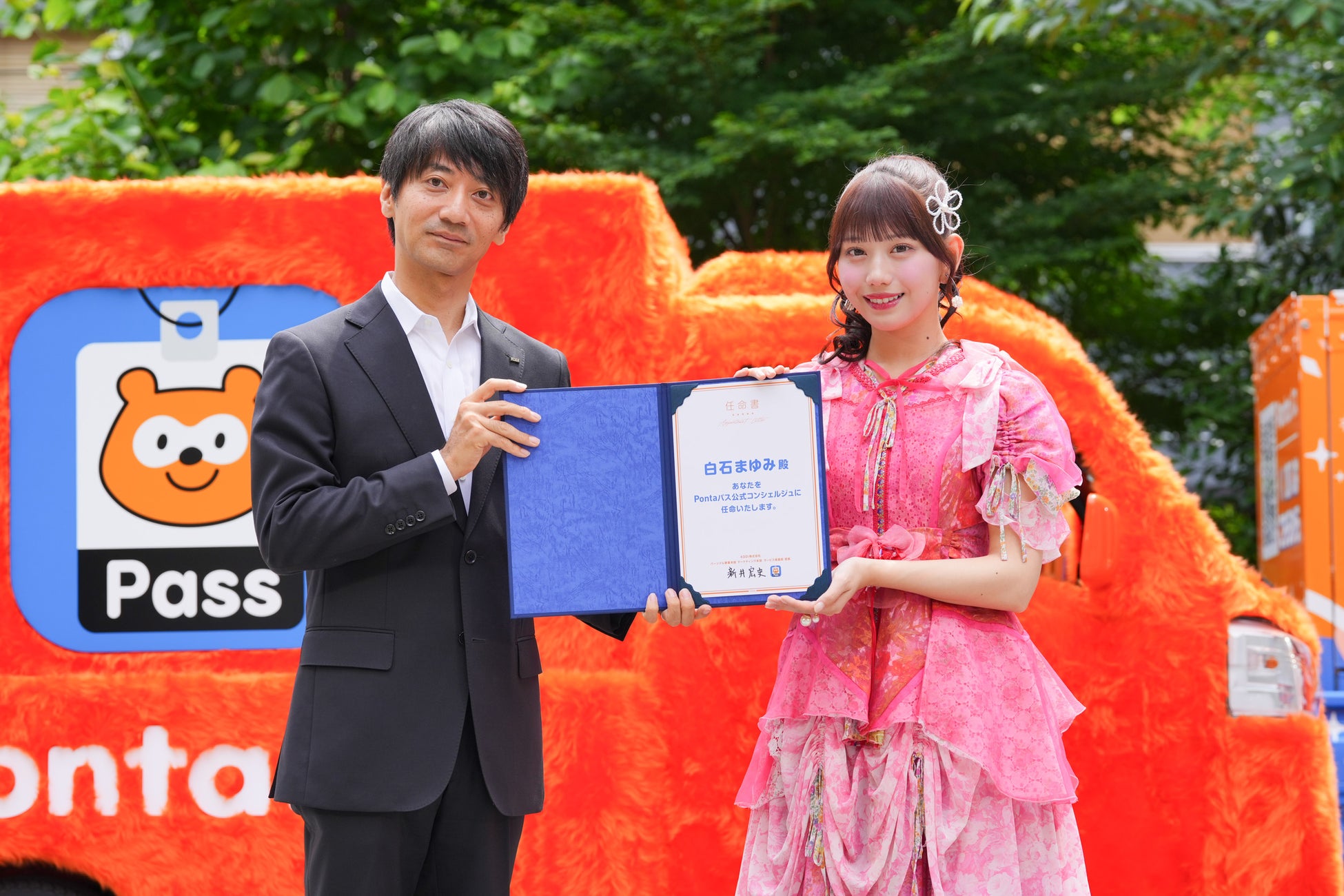 過去2度にわたり「Pontaパス スペシャルアンバサダー」を務めていただいたKAWAII LAB.から、Pontaパスの愛用者であり、これまで幾度とその魅力を熱弁いただいたSWEET STEADYの白石まゆみさんが、この度「Pontaパス公式コンシェルジュ」に就任。「Pontaパスともっともっと深く一緒にお仕事をしたいと思っていたので、熱量を自分から伝えて、公式コンシェルジュという素敵な役割を務めさせていただけると聞いて、泣いちゃいました。一番やりたかったお仕事なので、本当に嬉しくて、今日もすごく楽しみにしてきました。マネージャーさんとかに布教をしてしまっていたので、私のファンの人たちにもたくさんの魅力を伝えていきたいです。」と任命に対する想いや意気込みを語っていただきました。
