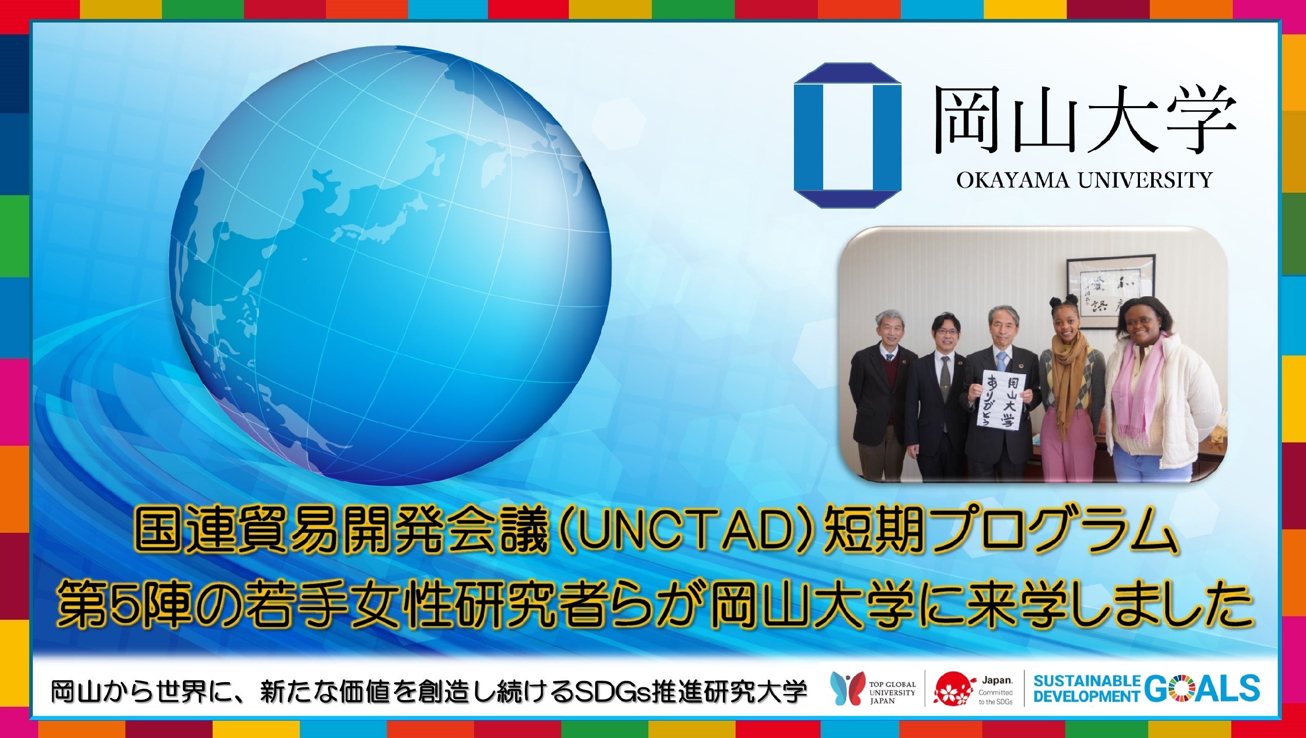 ・【岡山大学】国連貿易開発会議(UNCTAD)公式サイトで本学との共同プロジェクト「途上国からの若手女性研究者のための共同研究・研修コース」の紹介ページが開設されました!
