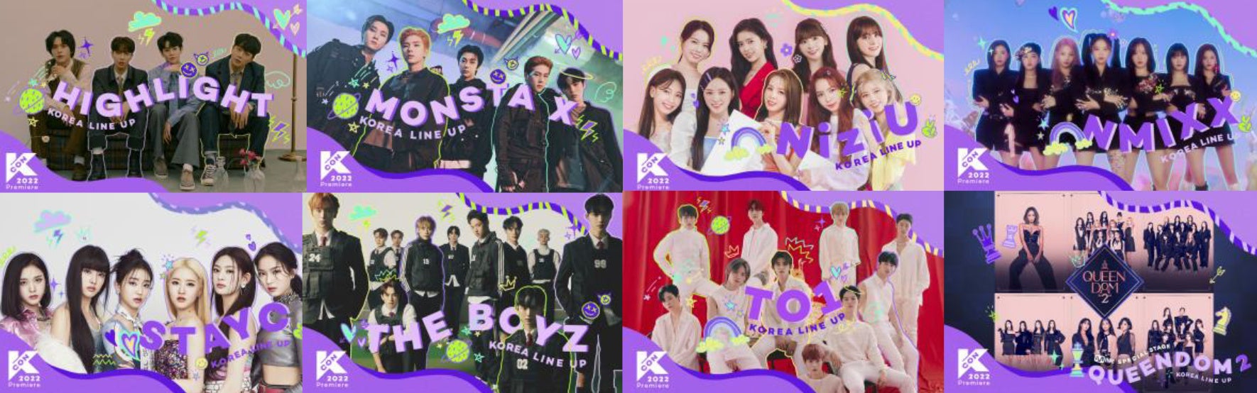 CJ ENMが5月7日と8日に韓国で開催する「KCON 2022 Premiere」にHIGHLIGHT、MONSTA X、NiziU、NMIXX、STAYC、THE BOYZ、TO1(※アーティスト名はアルファベット順)と共にMnetで放送が始まるガールズグループのカムバック合戦プログラム「QUEENDOM 2」に出演する6組が決定しました。アイドルの隆盛期を牽引し、海外進出への道を本格的に切り開いたK-POPを代表するアーティストたちと、グローバルなZ世代を中心に徐々にファン層を拡大しているK-POP第4世代の代表ミュージシャンたちが、アーティストラインナップに並んで名を連ねました。