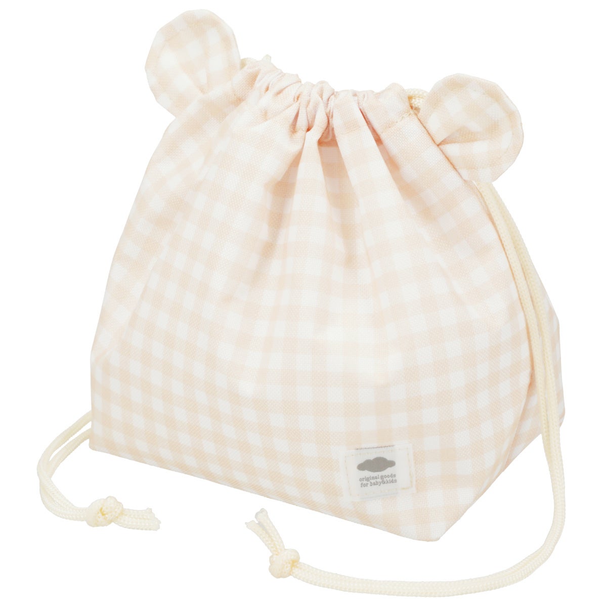 また、お出かけにも便利なバッグ類も同時にご用意しています。クマシルエットの巾着袋は、お食事セットやお世話グッズなど多用途に使えて、見た目もキュートです。保冷バッグは2サイズあり、哺乳瓶の保温・保冷など外出時にも便利です。
