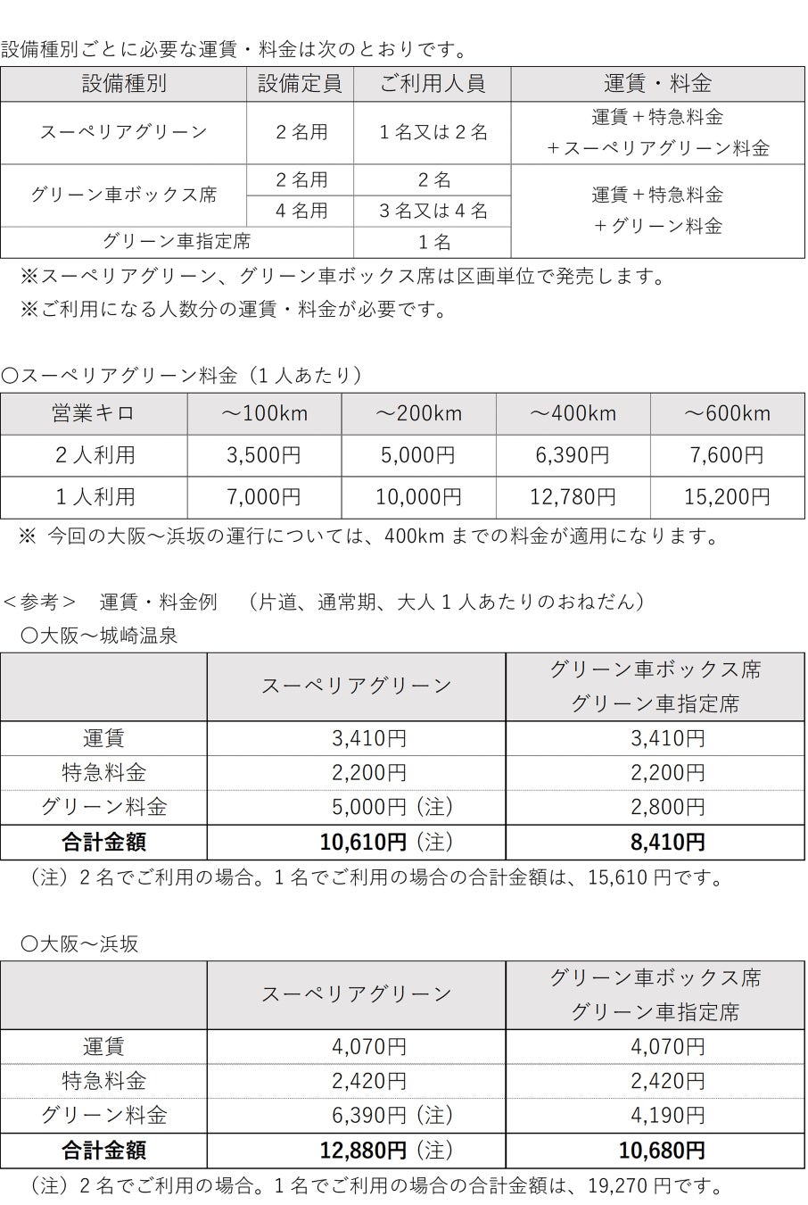運賃・料金例 (片道、通常期、大人1人あたりのおねだん)
