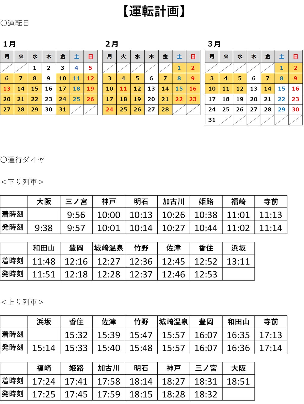(2)運転区間 大阪~浜坂(山陽本線、播但線、山陰本線経由)