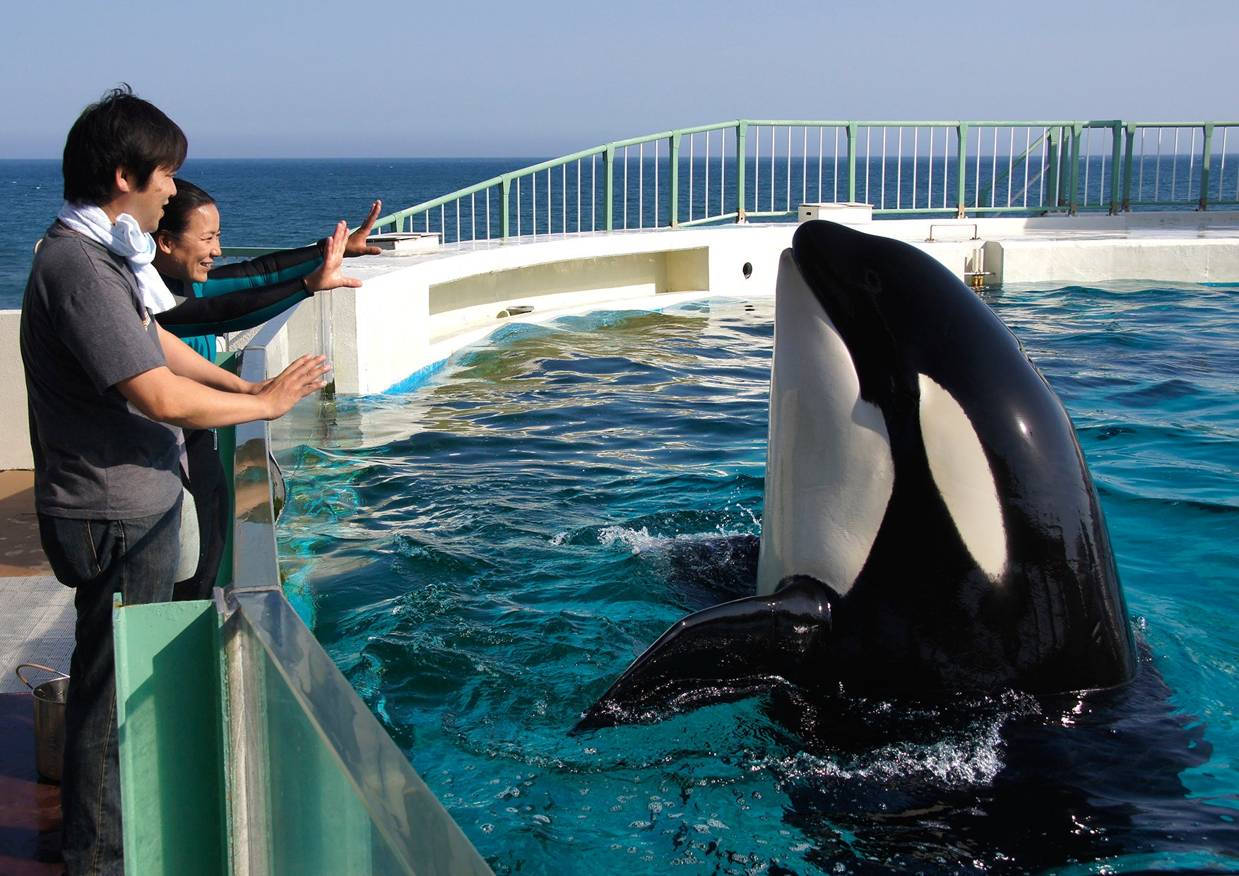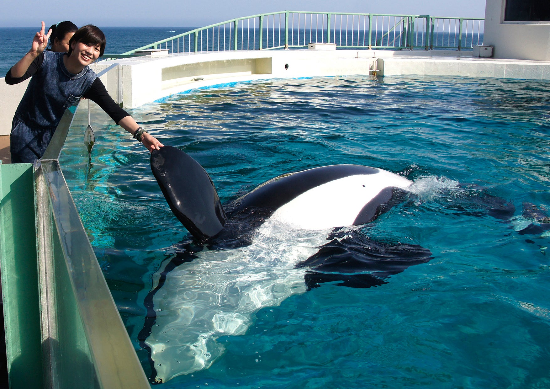 ⑤ シャチとの握手&給餌体験