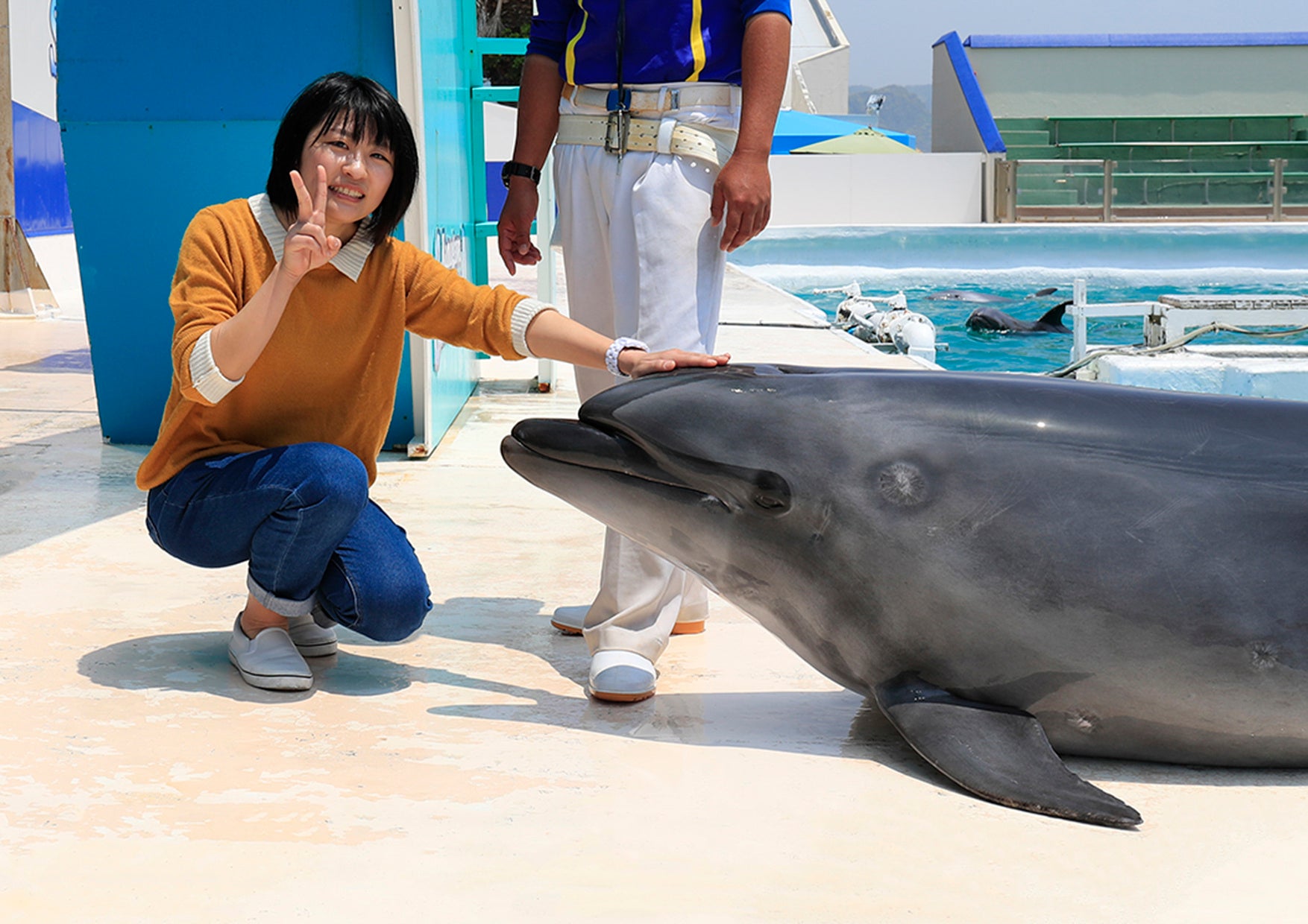 ⑥ イルカにタッチ&サイン出し体験