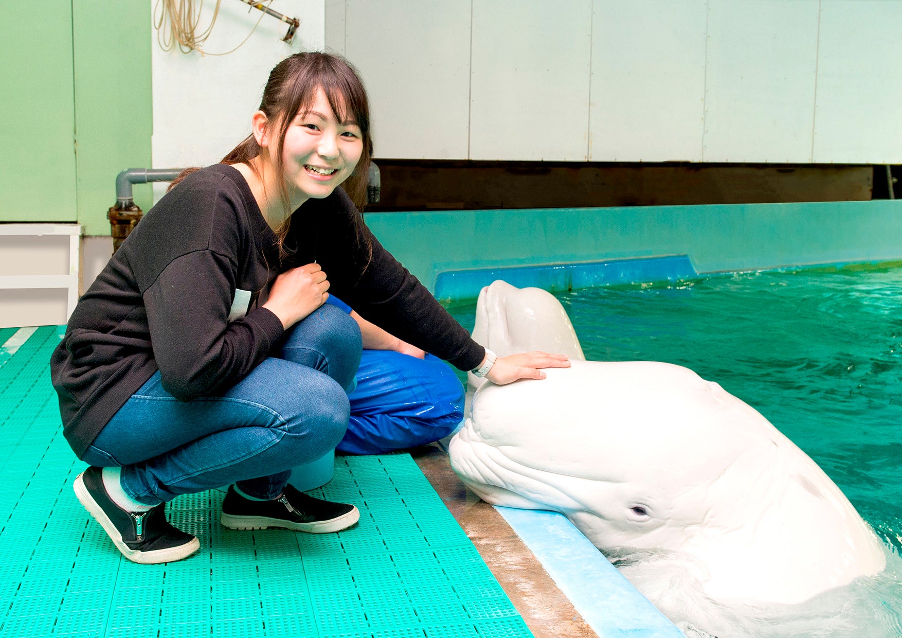④ ベルーガにタッチ(記念写真付き)&給餌体験