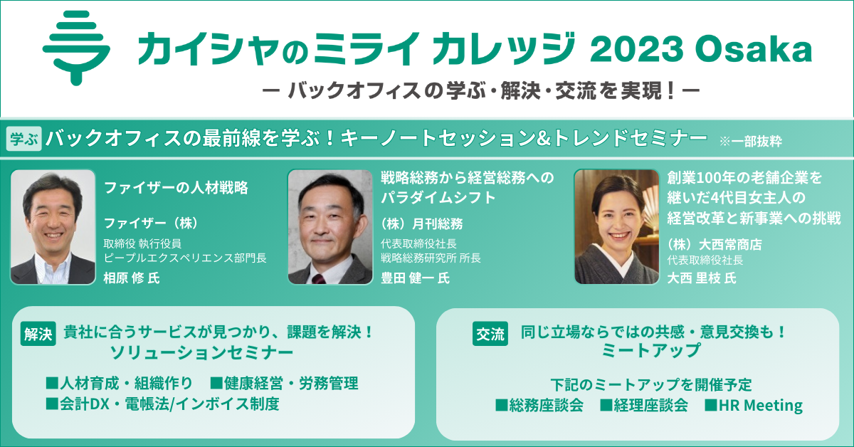カイシャのミライ カレッジ 2023 Osaka 会期:2023年11月15日(水)~11月17日(金) 会場:インテックス大阪