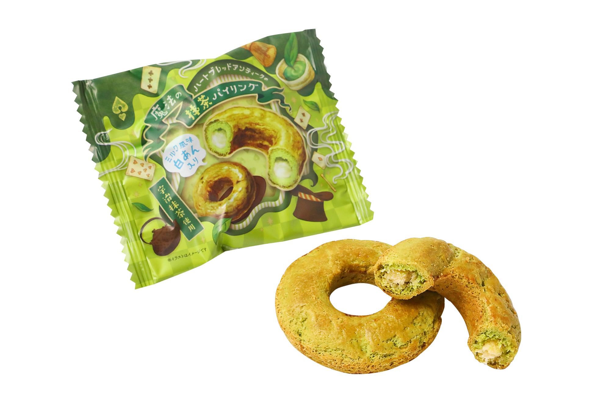 「ハートブレッドアンティーク」の看板商品「マジカルチョコリング」をおやつ感覚で楽しめる焼き菓子にアレンジした『魔法のチョコパイリング』から、抹茶フレーバーが新登場いたします。宇治抹茶を使用したパイ生地でミルク風味の白あんを包んで焼き上げました。宇治抹茶の豊かな香り、ミルク風味の白あんが織りなす和の味わいをご賞味いただけます。全国のスーパーマーケット・ドラッグストアなどでお買い求めいただけますので、抹茶好きの方必見な初夏限定フレーバーをぜひこの機会にご賞味ください。