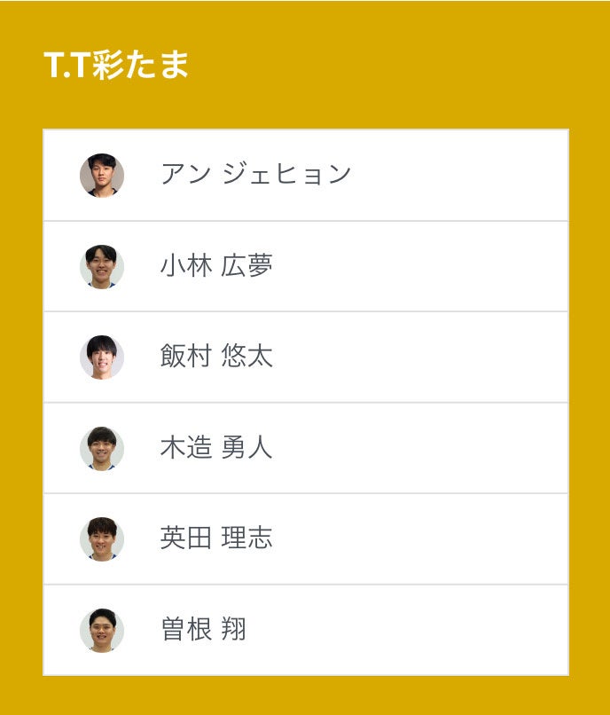 ノジマTリーグ 2023-2024シーズン 公式戦 11月18日開催 「T.T彩たま vs 金沢ポート」のベンチ入り選手を発表いたします。