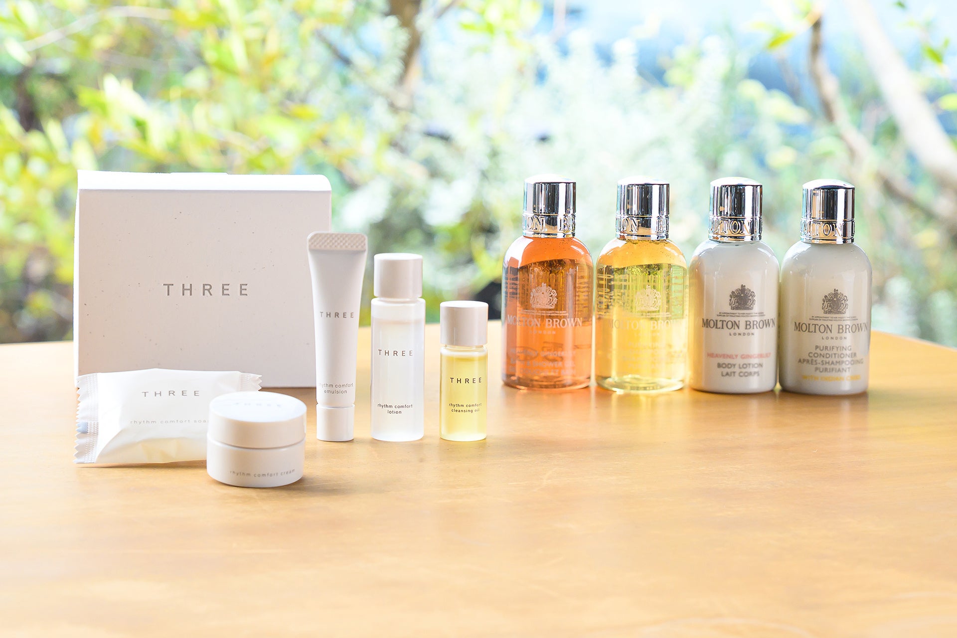 大切な1日の終わり、そして翌日の始まりをより豊かに彩るため、「THREE」のスキンケアセットをプレミアムフロアにご用意しました。さらに、エリザベス2世女王陛下から英国王室御用達の認定を受けた「MOLTON BROWN」のバスアメニティも備えています。
