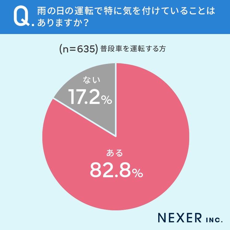 82.8%と8割以上の方が「雨の日の運転で特に気を付けていることがある」と回答しています。