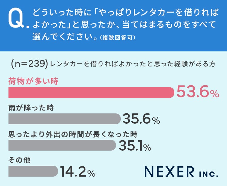 【後悔するのは荷物?雨?】53.6%が「荷物が多い時」にレンタカーを借りればよかったと後悔