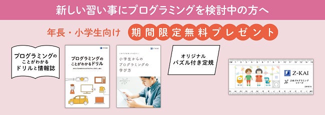 キャンペーン期間中に「Z会プログラミングシリーズ」の資料を請求していただくと、お子さま自身がプログラミングについての理解を深めることができるドリルを無料でプレゼント。