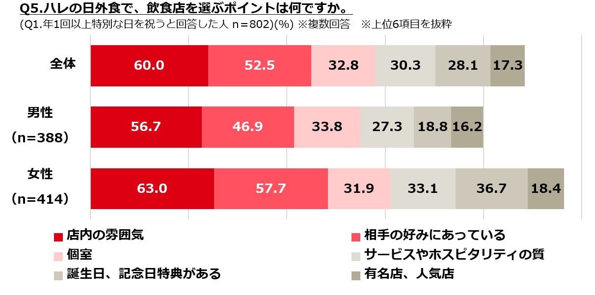 ハレの日の外食は「店内の雰囲気」を重視する人が6割!予算は普段の2倍に