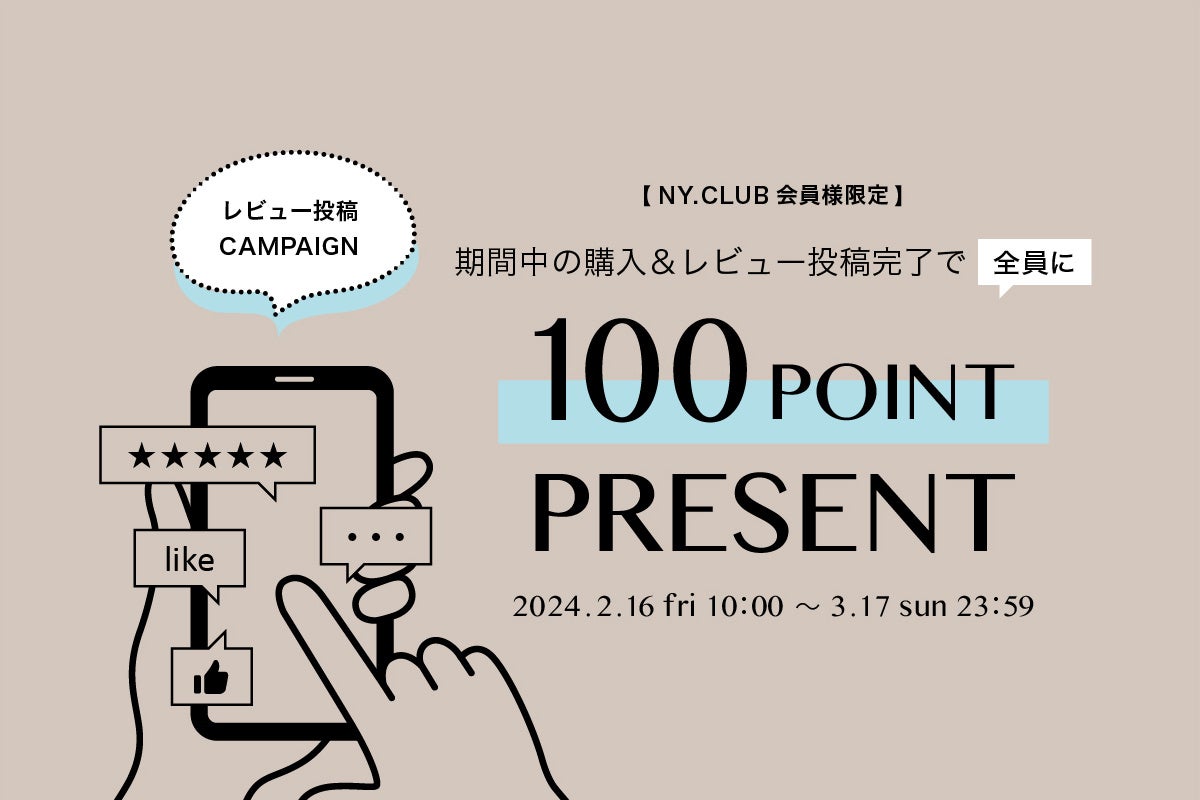 期間中の購入&レビュー投稿完了で全員に"100ポイント"プレゼント!