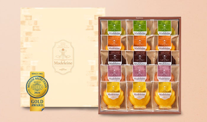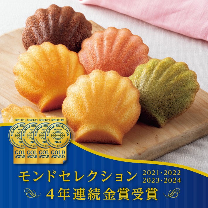 2024年度の『モンドセレクション』において、マドレーヌ全品(バター、ショコラ、いちご、オレンジ、抹茶)が4年連続金賞を受賞しました。