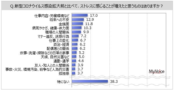 - 新型コロナウイルス感染拡大前と比べて、ストレスに感じることが増えたもの