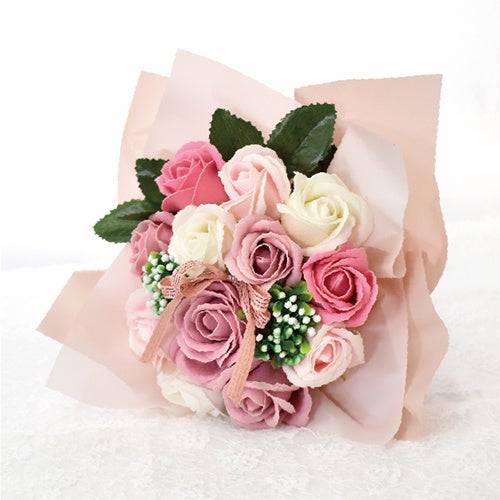 ほのかに石けんアロマが香る、石けん素材の花びらでできたブーケ。長く飾って楽めます。