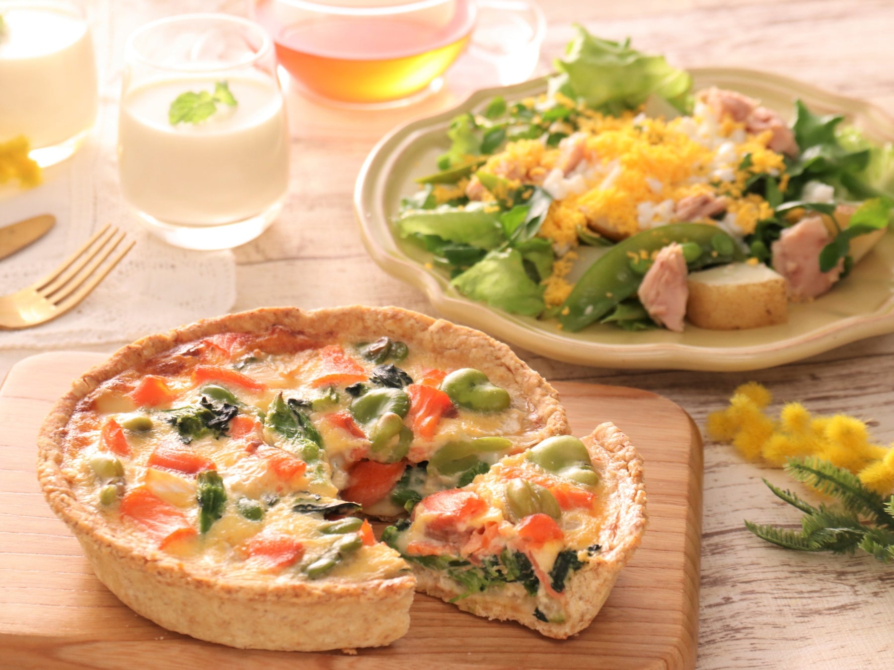 見た目も華やかなキッシュと、ミモザをイメージした新鮮な春野菜のサラダを一緒に作りましょう!キッシュは生地から丁寧に手作りし、風味豊かなオリーブ油や全粒粉を使用して、香ばしさを引き出す工夫が施されています。