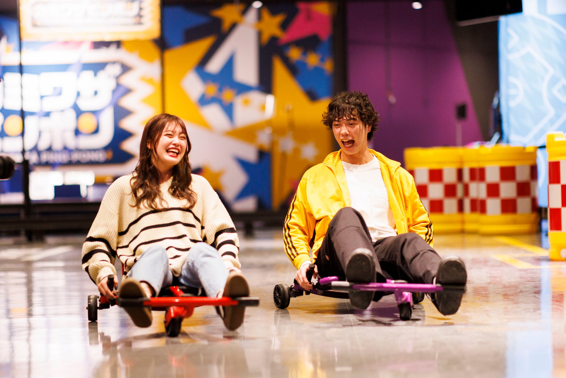 体を動かしながらまるでバラエティ番組に参加しているような体験ができる新感覚のバラエティスポーツ施設です。学生グループやファミリーのお客さまから、「全力ではしゃげる施設」と多くの支持を得ています。