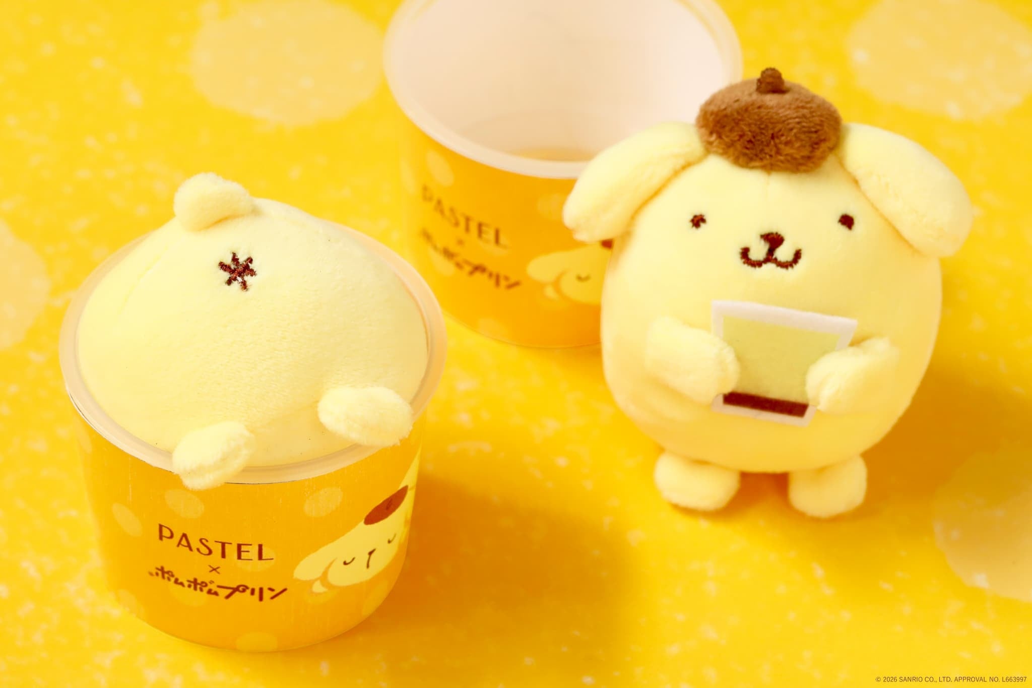 “もっともっとおっきくなること”を夢見る「ポムポムプリン」が、「パステル」のプリンをい~っぱい食べて、おっきくなっちゃった!?ビッグになった「ポムポムプリン」が、“お菓子な”世界を舞台に「はらぺこ♪ゆめ旅行」へ出発!そんなキュートで遊び心あふれる「ポムポムプリン」の夢の中のシーンを、コラボスイーツとともにお楽しみください。