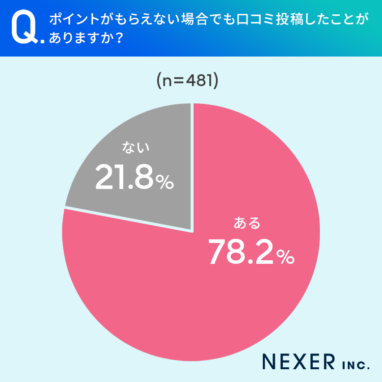 ■78.2%がポイントがもらえない場合でも口コミ投稿したことが「ある」