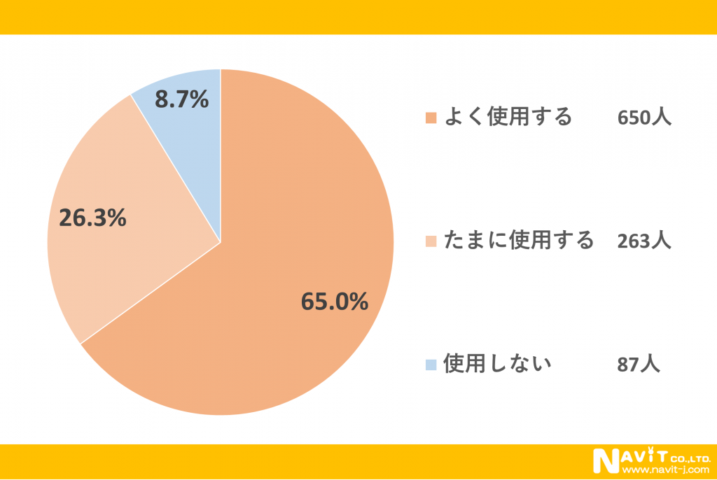 クレジットカードを「よく使用する」という方が65.0%と最も多く、「たまに使用する」という方も26.3%いらっしゃいます。大部分の方がクレジットカードを頻繁に使用しているようです。