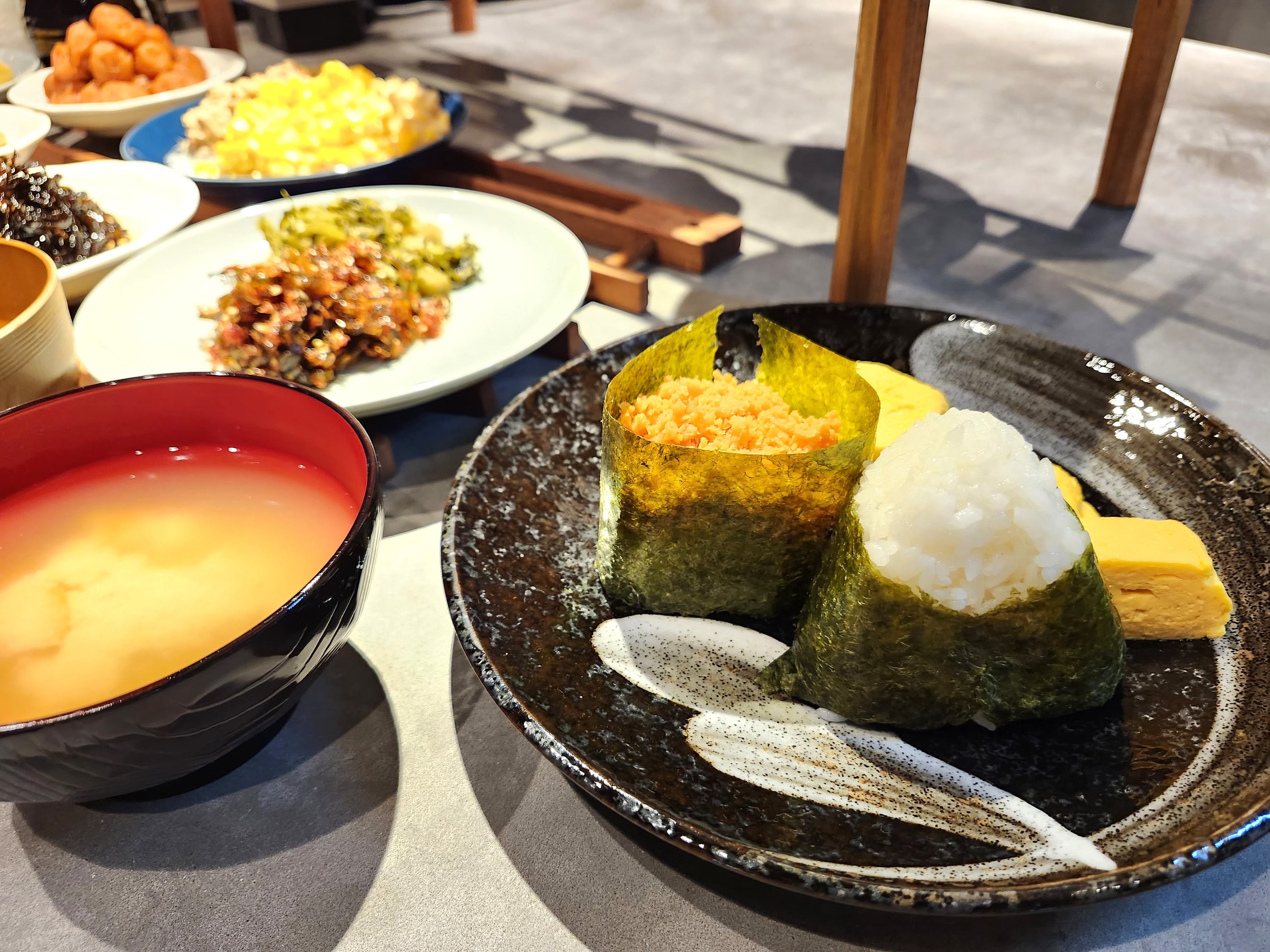 「お客様ラウンジ 朝食新メニュー、おにぎり・味噌汁の無料提供開始」 変なホテル福岡 博多