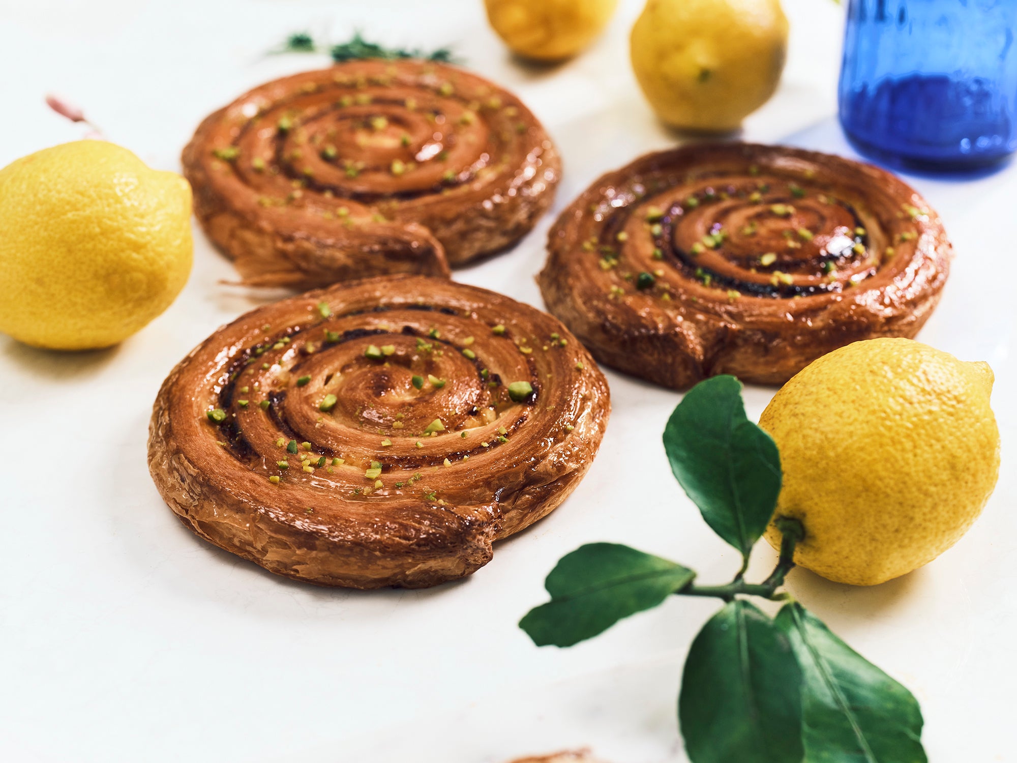フランス産醗酵バターを使用した生地にレモンピールを巻き込み焼き上げました。