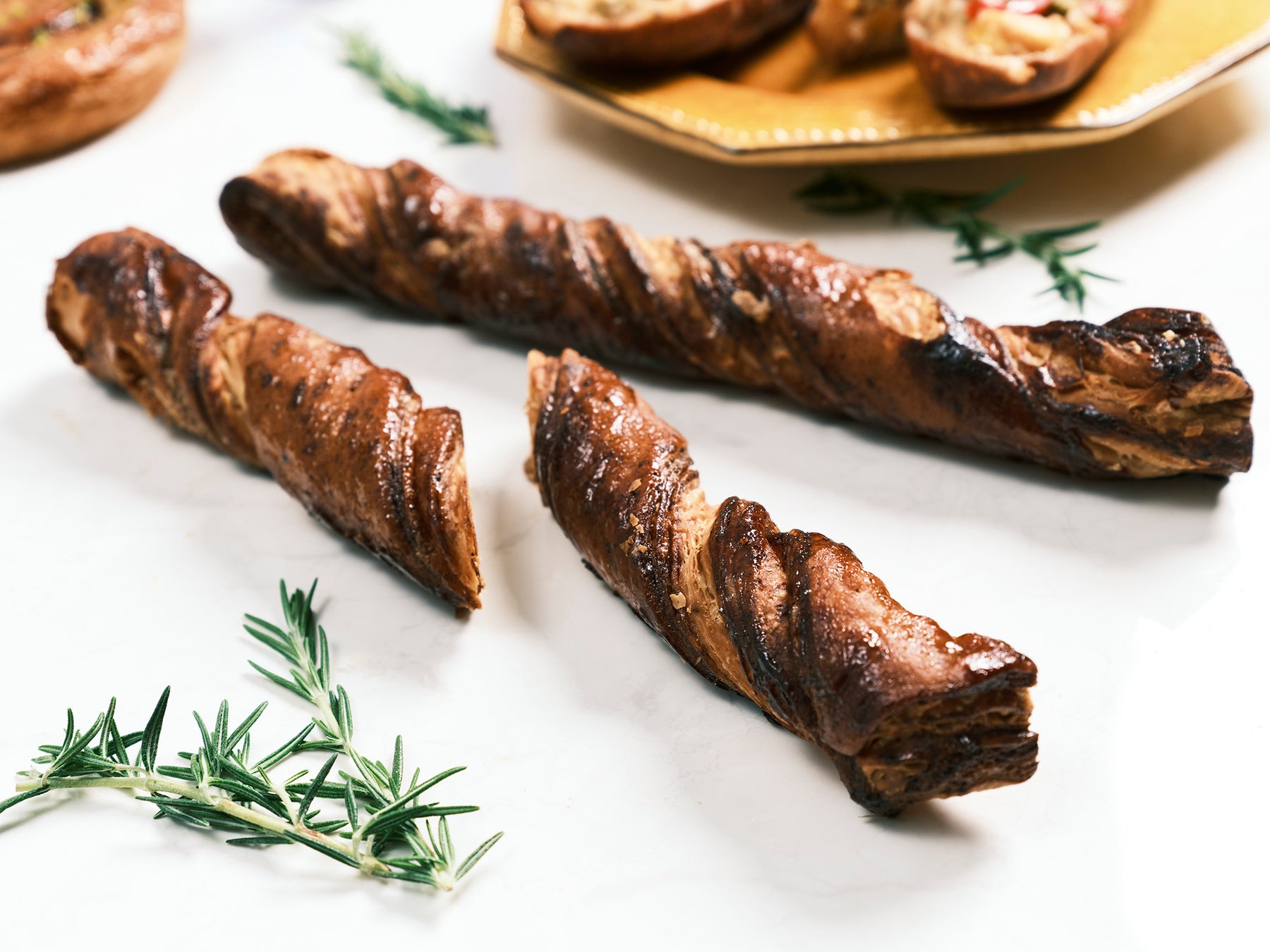 フランス産バターを折り込んだ生地にハーブ、パルメザンチーズを入れ焼き上げました。