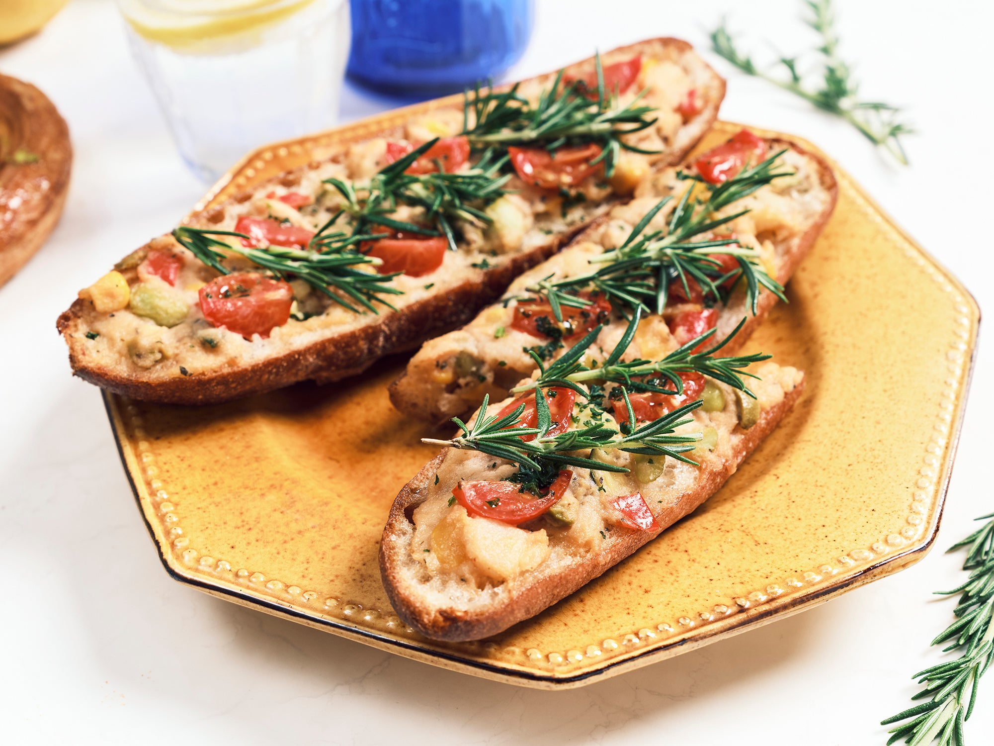 南仏プロヴァンス・ニース風タルティーヌ。ポテトベースに彩り野菜、ツナ、オリーブ、ローズマリー、バジルをトッピングしました。